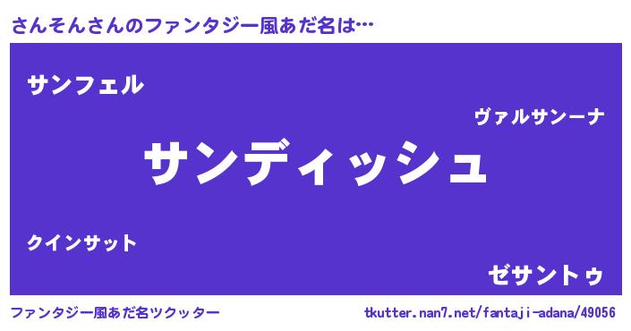 | 女子向けラノベタイトル風あだ名 | 『さんそんの契約王妃』『闇のさんそん』 |