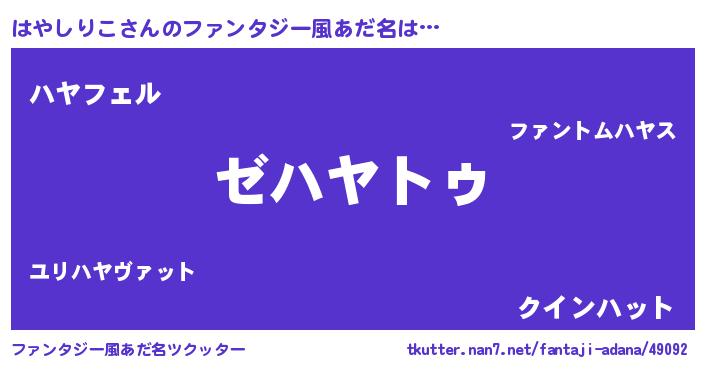| 女子向けラノベタイトル風あだ名 | 『闇のはやしりこ』『はやしりこ恋絵巻』 |