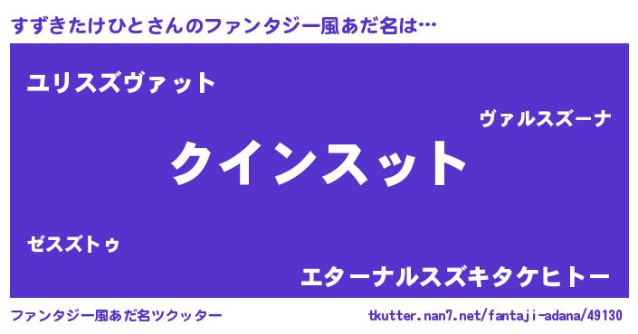 | 男性向けラノベタイトル風あだ名 | 『ノーゲーム・ノースズキタケヒト』 |