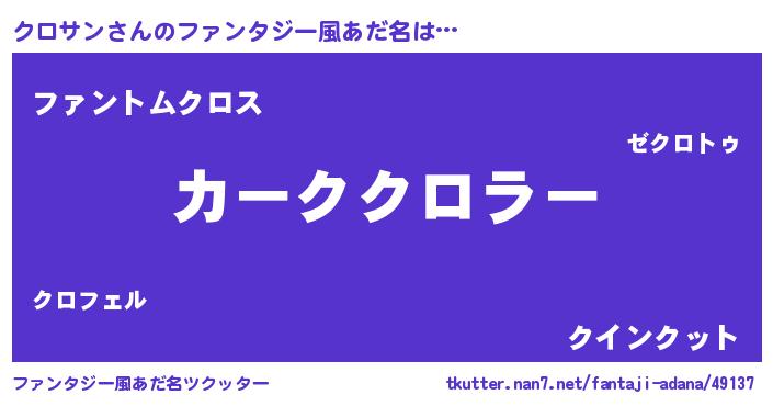 | 自動車の名前っぽいあだ名 | 『フェクーロ』『クルトロパン』 |