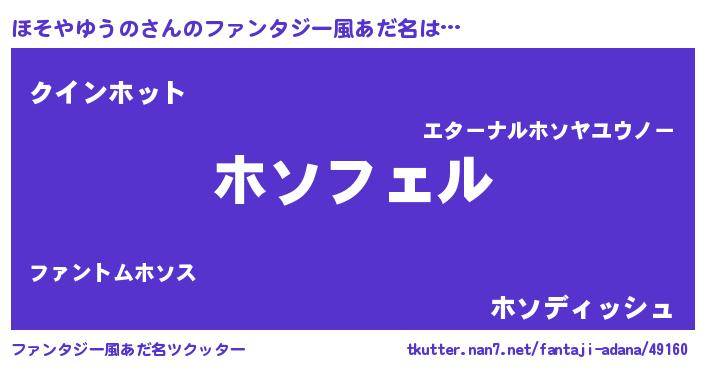 | 胡散臭い通販商品みたいなあだ名 | 『モテモテ間違いなし霊験あらたかなお札…その名も「ほそやゆうの」』 |