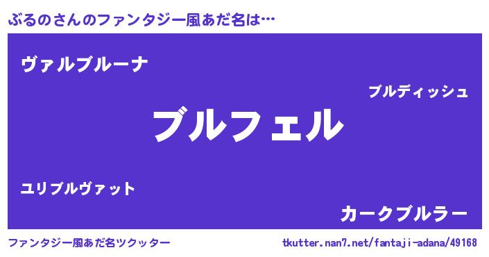 | ヘコむあだ名 | 『ぶるにー』『ぶるの(震え声)』 |