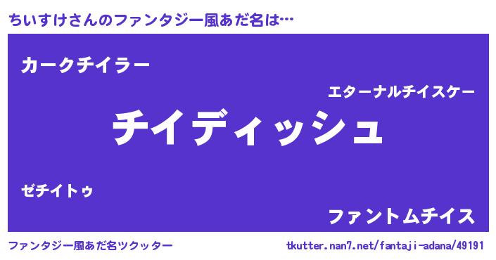 | ヒーロー風カッコイイあだ名 | 『ネオチイスケ』『黄金騎士チイ』 |