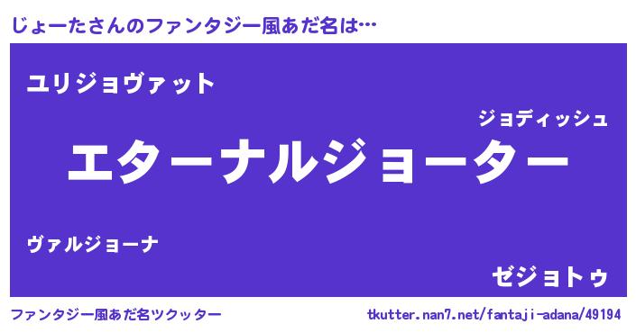 | 意味不明あだ名 | 『じょーたフォーエバー』『自称じょーた』 |