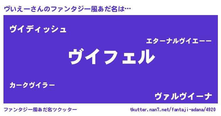 ヴいえーさんのファンタジー風あだ名をツクッター!