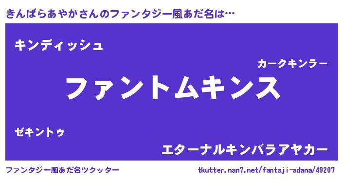 | 意味不明あだ名 | 『とにかく怪しいきんばらあやか』 |