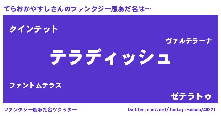 | 意味不明あだ名 | 『永久保存てらおかやすし』 |