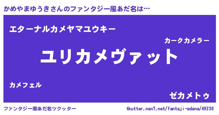| 男性向けラノベタイトル風あだ名 | 『カメヤマユウキスレイヤー』 |