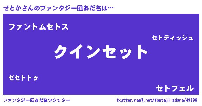 | ヒーロー風カッコイイあだ名 | 『慈愛の使者せとか』『魔戒騎士セト』 |