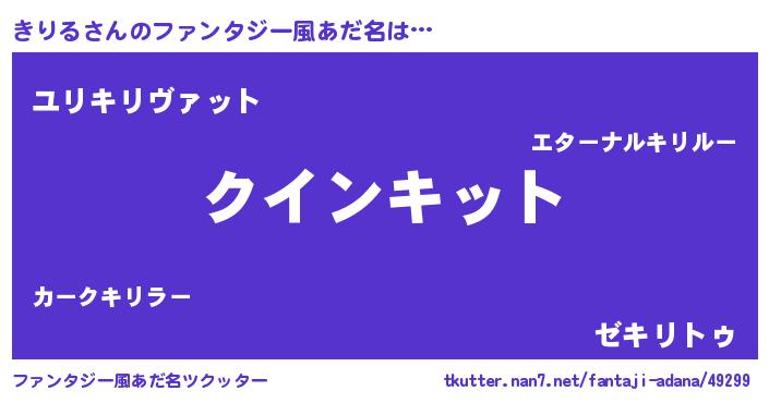 | 男性向けラノベタイトル風あだ名 | 『おまえをオタクにしてやるから、俺をきりるにしてくれ! 』 |