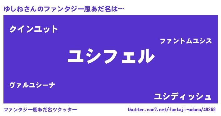 | 男性向けラノベタイトル風あだ名 | 『ゆしねに滅ぼされるだけの簡単なお仕事です』 |