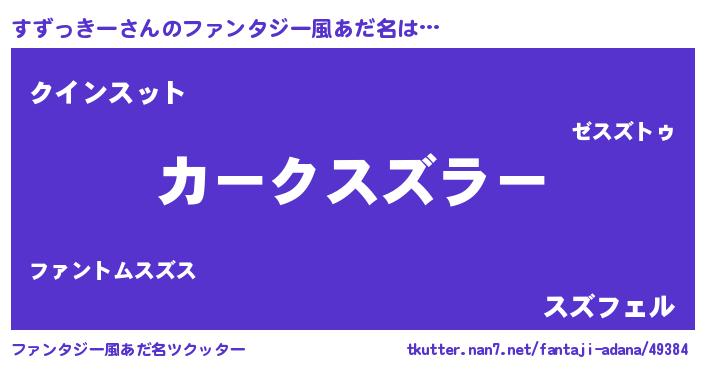 | ヒーロー風カッコイイあだ名 | 『慈愛の使者すずっきー』『炎刃騎士スズ』 |