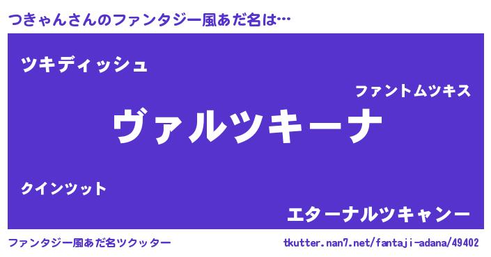 | ポケモン風あだ名 | 『ツーキイ』『ゼニツキ』『ツキゴンZ』 |