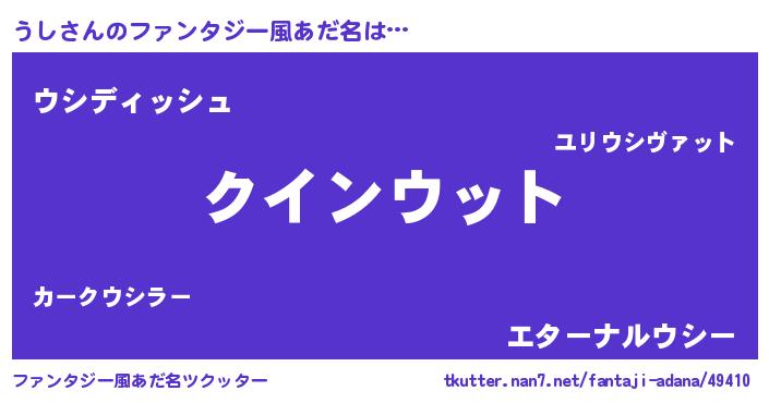 | 男性向けラノベタイトル風あだ名 | 『ノーゲーム・ノーウシ』 |