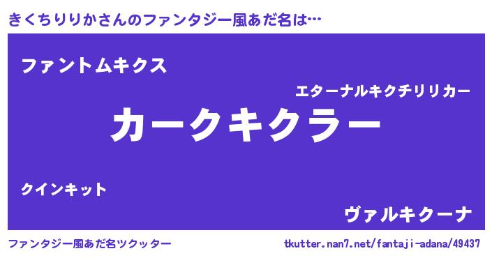 | 胡散臭い通販商品みたいなあだ名 | 『信頼と実績のサプリメント…その名も「きくちりりか」』 |