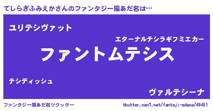| 女子向けラノベタイトル風あだ名 | 『てしらぎふみえか様がみてる』 |