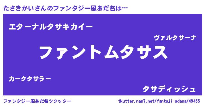 | ヒーロー風カッコイイあだ名 | 『幻影騎士タサ』『ネオタサキカイ』 |