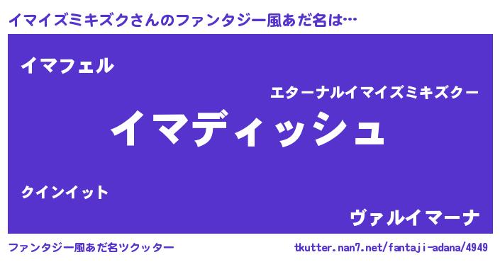 | 意味不明あだ名 | 『永久保存イマイズミキズク』 |