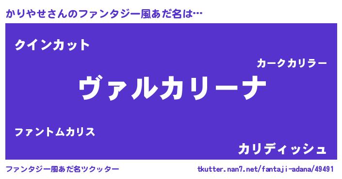 | 男性向けラノベタイトル風あだ名 | 『この素晴らしい世界にかりやせを!』 |