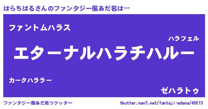 | ポケモン風あだ名 | 『ハラチダネ』『ヒハラチハル』 |