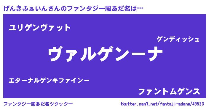 | 男性向けラノベタイトル風あだ名 | 『魔弾の王とげんきふぁいん』 |