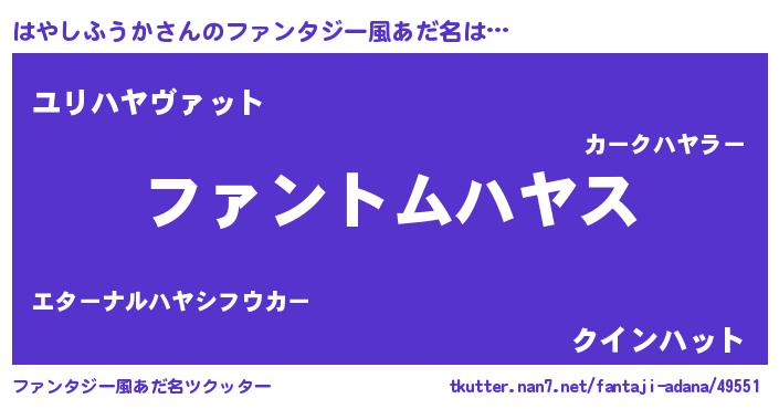 | 男性向けラノベタイトル風あだ名 | 『はやしふうかに滅ぼされるだけの簡単なお仕事です』 |