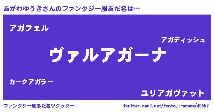 | ヘコむあだ名 | 『あがふぇ~』『あがわゆうき(遠い目)』 |