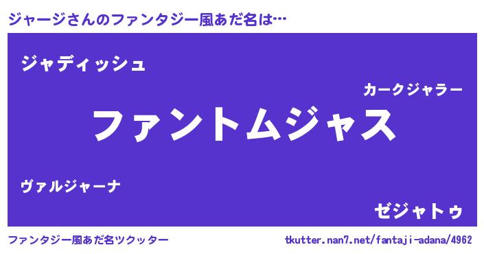 | ヒーロー風カッコイイあだ名 | 『炎刃騎士ジャ』『ネオジャージ』 |