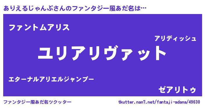 | 女子向けラノベタイトル風あだ名 | 『ありえるじゃんぷの玉の輿計画!』 |