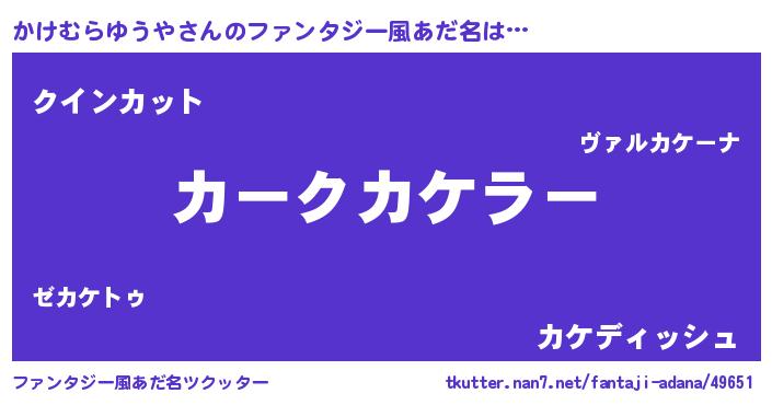 | 伝説のあだ名 | 『魔王と互角に渡り合う占い師かけむらゆうや』 |
