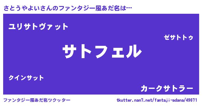 | 男性向けラノベタイトル風あだ名 | 『サトウヤヨイアートオンライン』 |