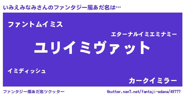 | ヘコむあだ名 | 『いみっぺ』『豆乳』『いみっふぃ~』 |