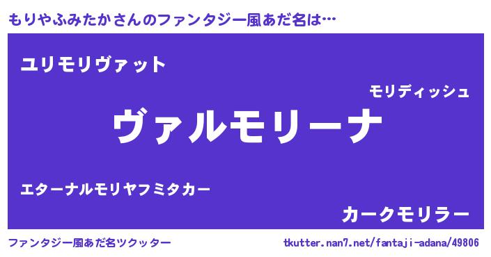 | 男性向けラノベタイトル風あだ名 | 『魔弾の王ともりやふみたか』 |