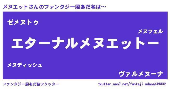 | ポケモン風あだ名 | 『メヌエダネ』『メヌセウス』 |