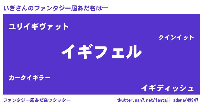 | 男性向けラノベタイトル風あだ名 | 『いぎの憂鬱』『転生したらいぎだった件』 |