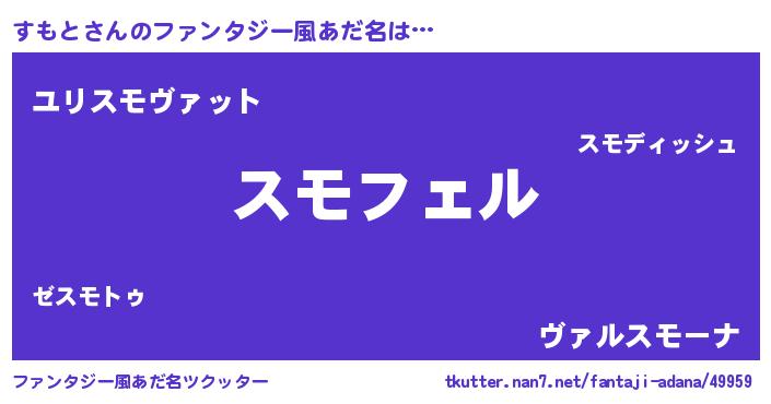 | 自動車の名前っぽいあだ名 | 『スモティマ』『スールスモイス』 |