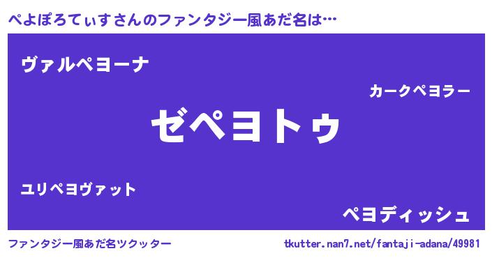 | 男性向けラノベタイトル風あだ名 | 『魔法科高校のぺよぽろてぃす』 |