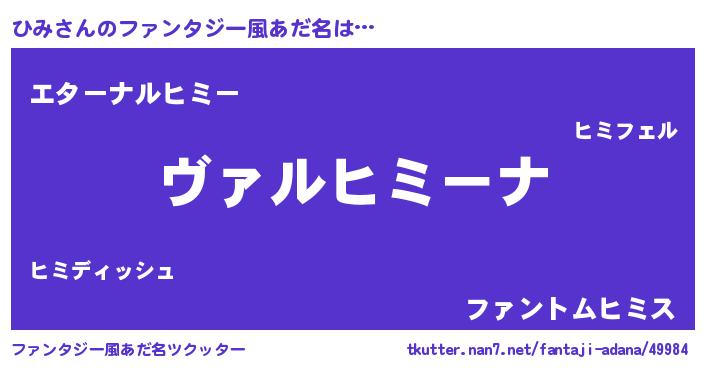 | 男性向けラノベタイトル風あだ名 | 『魔弾の王とひみ』『はたらくひみさま!』 |