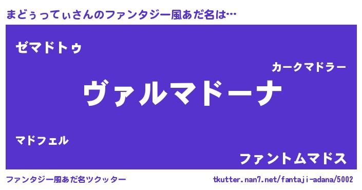 | 男性向けラノベタイトル風あだ名 | 『この素晴らしい世界にまどぅってぃを!』 |