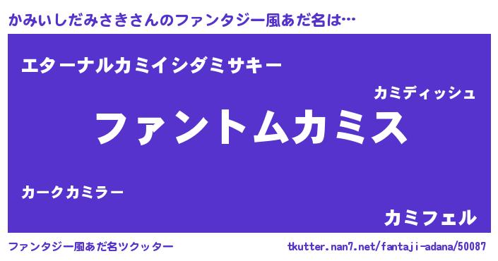 | 胡散臭い通販商品みたいなあだ名 | 『信頼と実績のサプリメント…その名も「かみいしだみさき」』 |