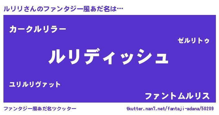 | 意味不明あだ名 | 『永久保存ルリリ』『自称ルリリ』 |