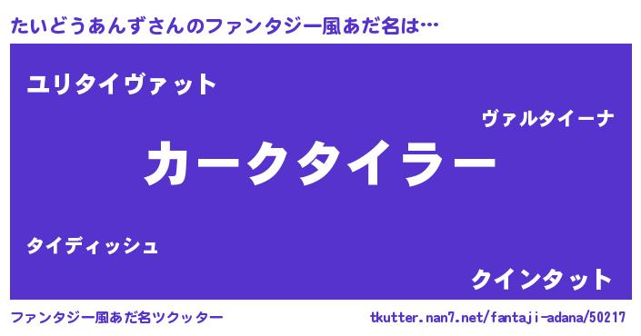 | 欧米人風あだ名 | 『たいどうあんず・ステッグマイヤー』 |