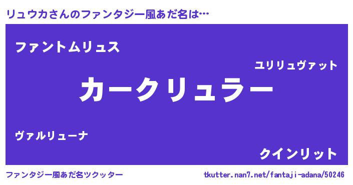 | 男性向けラノベタイトル風あだ名 | 『緋弾のリュウカ』『リュウカスレイヤー』 |