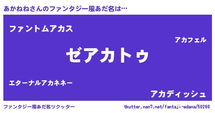 | ヒーロー風カッコイイあだ名 | 『超時空戦士アカネネ』『炎刃騎士アカ』 |