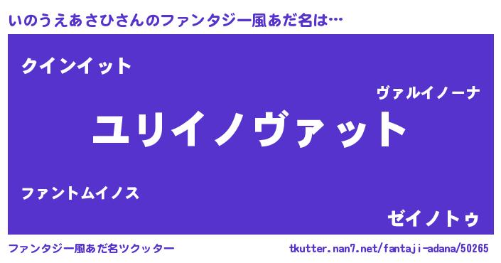 | 女子向けラノベタイトル風あだ名 | 『いのうえあさひの玉の輿計画!』 |