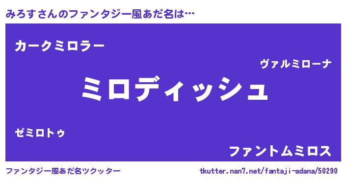 | 意味不明あだ名 | 『永久保存みろす』『自称みろす』 |