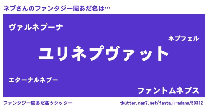 | ヒーロー風カッコイイあだ名 | 『仮面ネプダー』『幻影騎士ネプ』 |