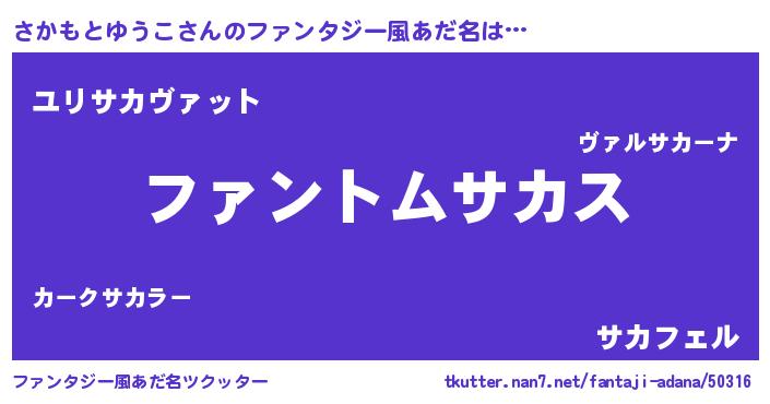 | ポケモン風あだ名 | 『サカゴンZ』『ヒサカモトユウコ』 |
