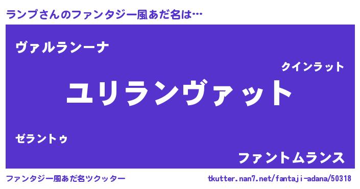 | 男性向けラノベタイトル風あだ名 | 『ランプ~年齢イコール彼女いない歴の魔法使い~』 |