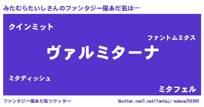 | 意味不明あだ名 | 『住所不定無職みたむらたいし(98歳)』 |